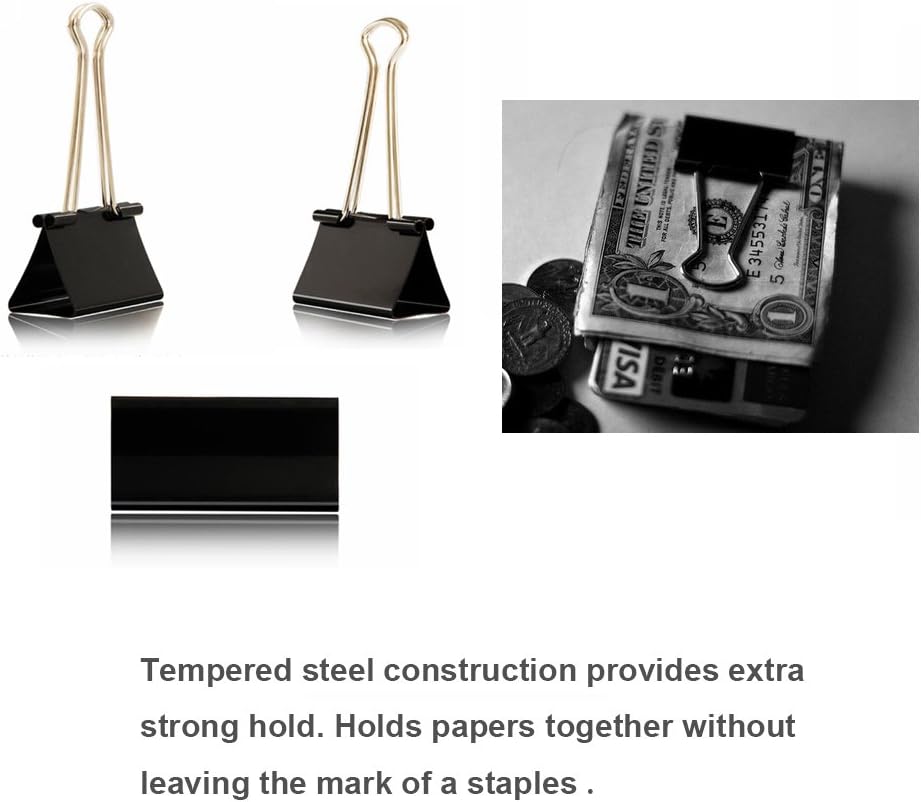 - STORAGE - These binder clips are made of iron material, strong and durable, black and silver color. Packaged In A Reusable Plastic Container For Easy Storage