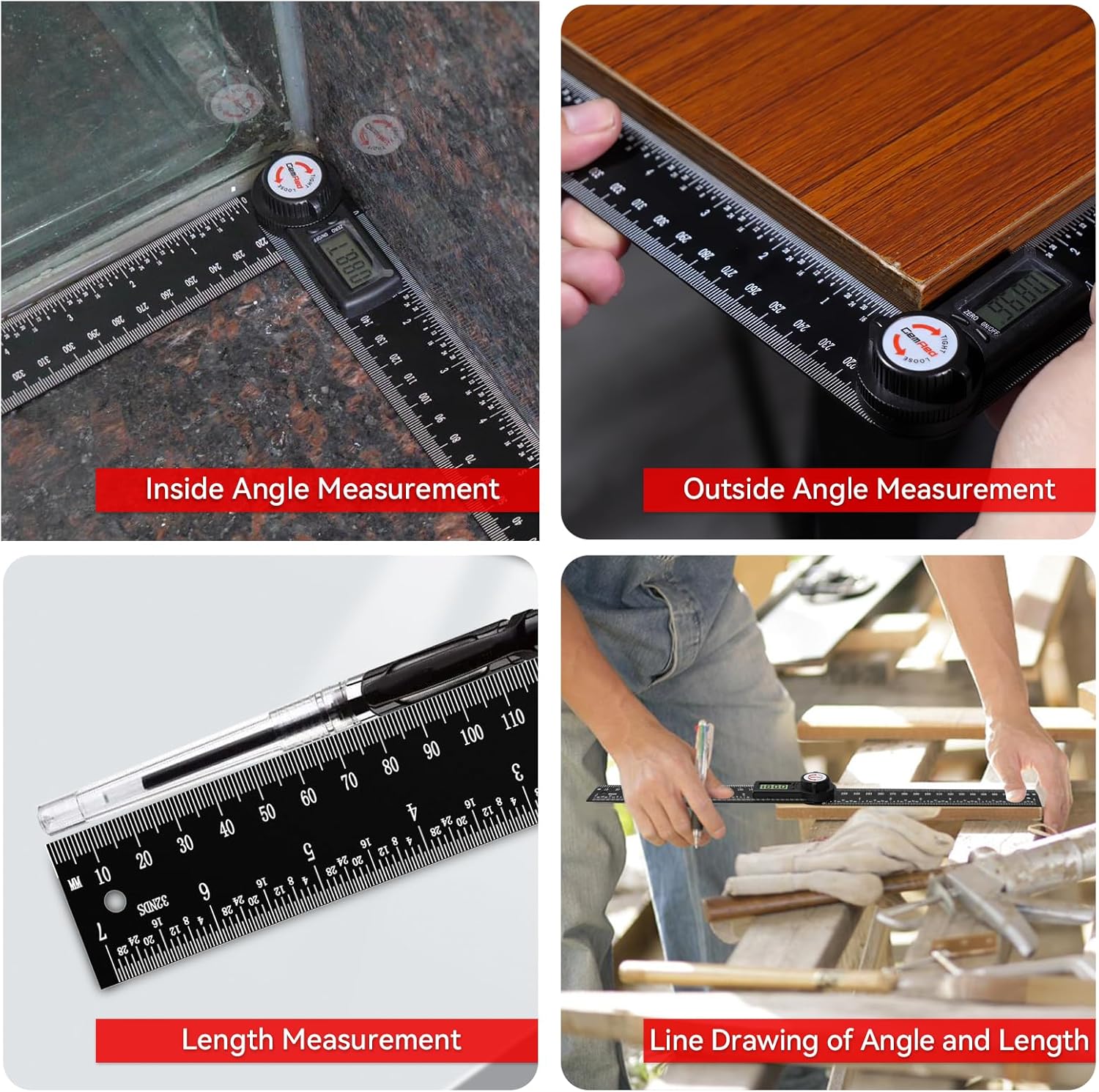 - HIGH ACCURACY -- Accuracy of this protractor is ±0.3 degree. It is a good choice for most projects like woodworking, crown molding and daily use. Folded length: about 7.5 inch/220mm.Total length 400mm.