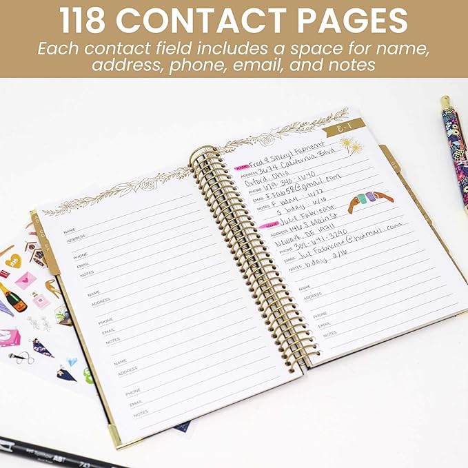 - ORGANIZE YOUR CONTACTS - This address book with alphabetical tabs makes organizing your contacts a breeze. Safely store names, addresses, emails, phone numbers, and more all in one place. Never lose important information again!