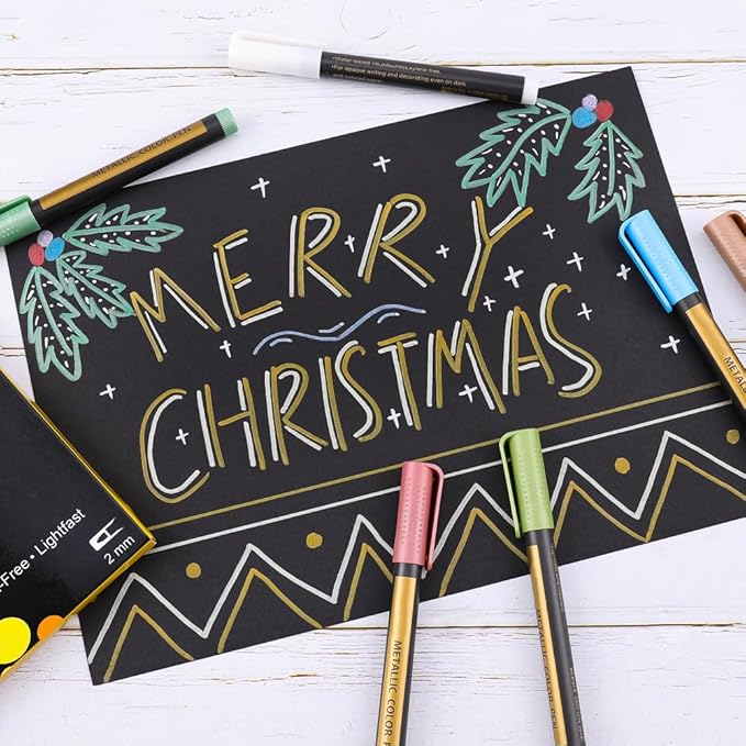 • Marks on Most Surfaces - Acid-free metallic markers for black paper, and work on most surfaces, such as ceramic, fabric, cardstock, rock, wood, and more. Unlike most metallic paint pens, you do not need to shake them when using our bright metallic markers