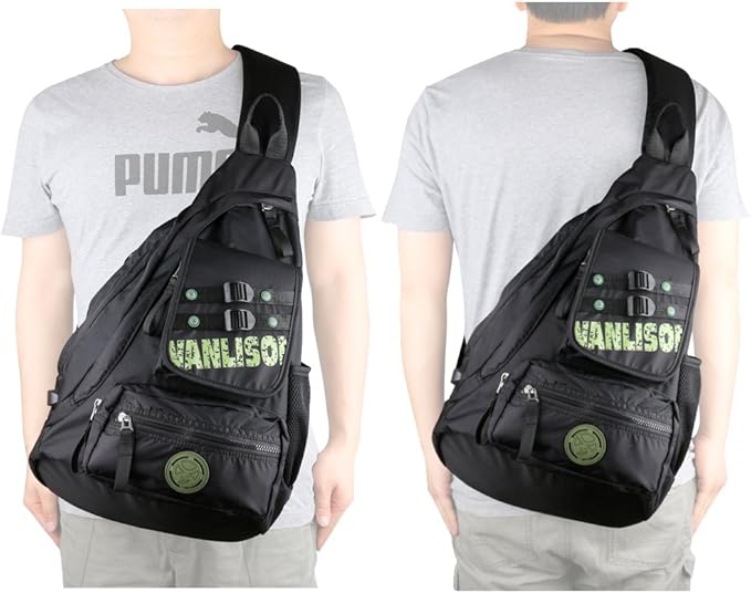 Larswon Sling Bag with USB Charging Port, Sling Backpack USB, Shoulder Backpack, Large Crossbody Bag, Chest Bag Large Black