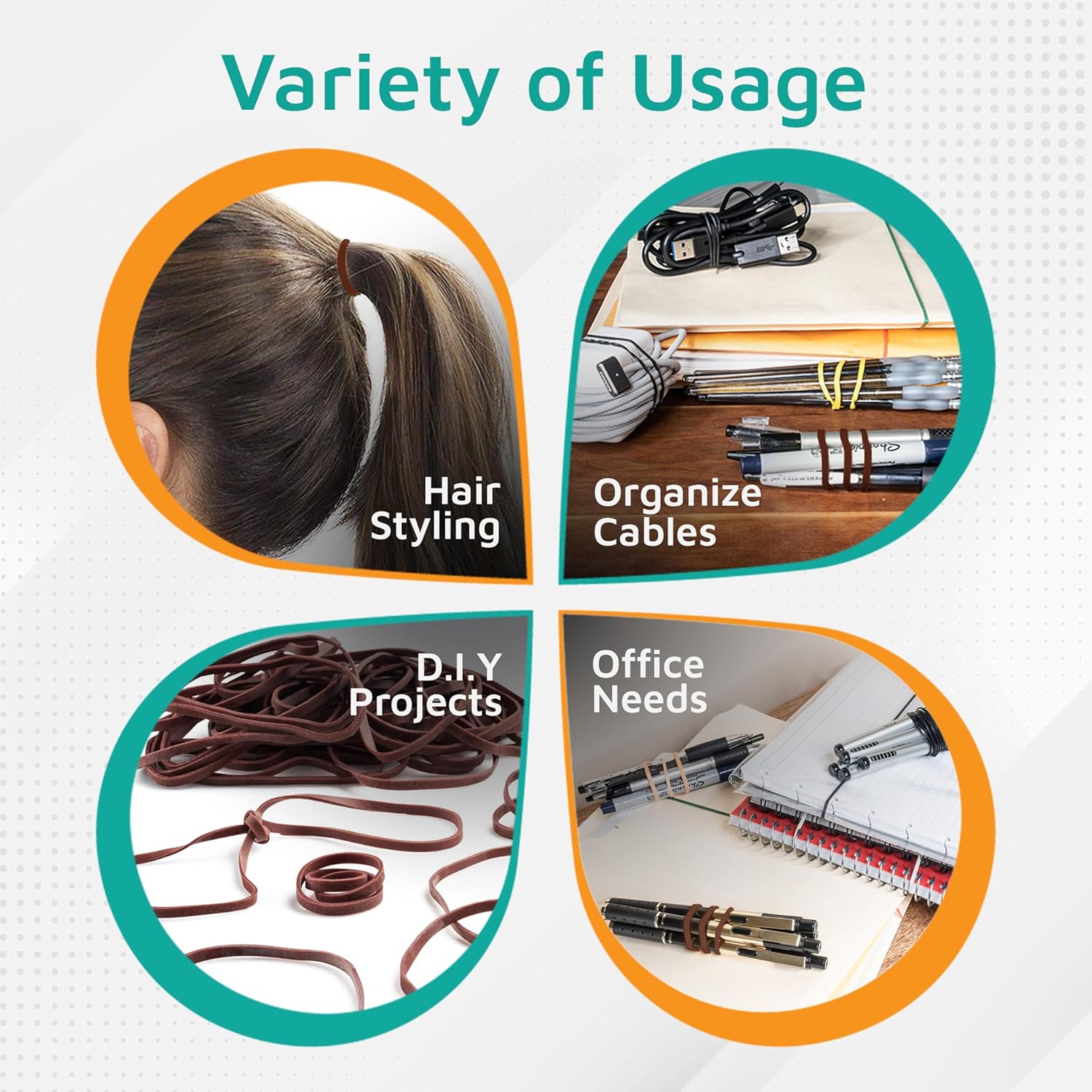 - Soft stretch: These rubber bands have a soft stretch making them comfortable to use and handle. Perfect for everyday use: Ideal for organizing papers and sealing bags at home or in the office.