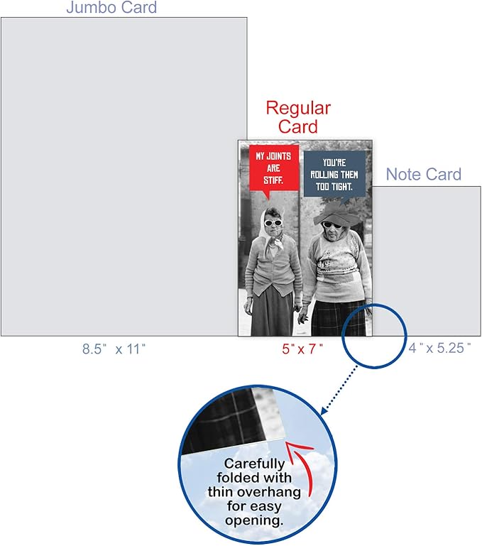 - CARD SIZE - Receive 1, regular sized notecard with 5x7 Inch envelope. We offer funny cards that come either blank or greeted inside, so be sure to review all product photos before purchasing.