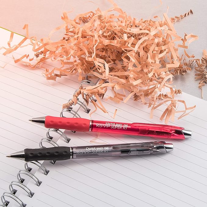 Pentel RSVP Super RT Ballpoint Pen, (0.7mm) Fine Line, Black Ink, 2-Pk - BX477BP2A