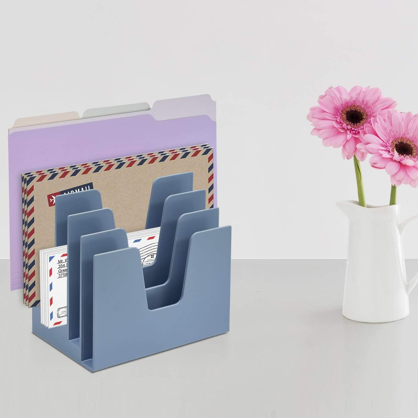 Acrimet 5 Section Incline File Sorter Organizer, Mail, Folder, Letter Desk Organizer, Rack for Office Organization Desktop (Plastic) (Solid Blue Color)