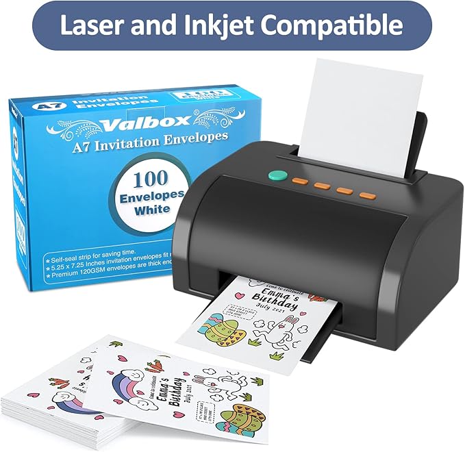 - 【Printer Friendly】Print with your Laser and Inkjet Printers on our A7 greeting card envelopes. Perfect size and weight, never worry about smudging or having the envelopes engulfed by your printer.