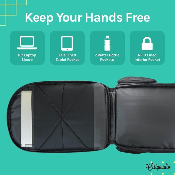 Origaudio Embarcadero Pack Business Backpack – 17 Inch Padded Laptop Sleeve – Laptop Compartment Zips Totally Open for TSA – 25 L Capacity & USB Techports– X-Large Pockets for Water Bottles and Sungla