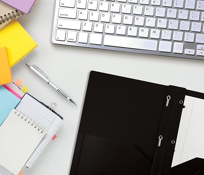 - 24-Pack of BLACK 0.35mm Heavyweight polypropylene folders with 3 metal prongs to fit 8.5" x 11" paper/documents