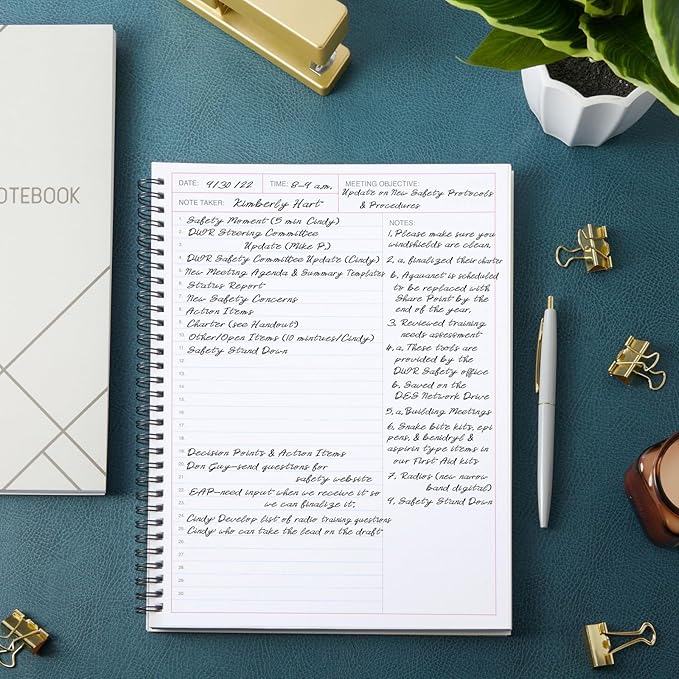 - Easy Organization: Each undated daily notebook for work has ruled pages, space for the date, time, office meeting agenda and objective, meeting minutes, and 30 meeting points for clear organization