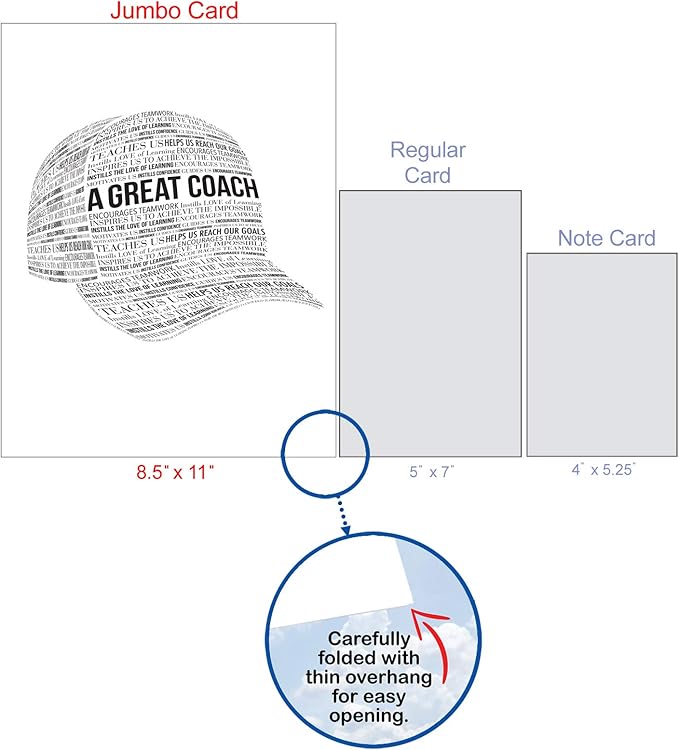 NobleWorks - 1 Jumbo School Teacher Thank You Notecard From US, Everyone w/Envelope (8.5 x 11 Inch) Team Sports Athlete Gratitude, Coaches and Mentor Notecard - Great Coach Thank You J6767TYG-US