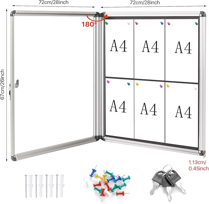 - Professional and Organized Look —Offering a compact solution to save valuable wall space and helps to keep the wall clean and organized,such as an office, school, or community center.