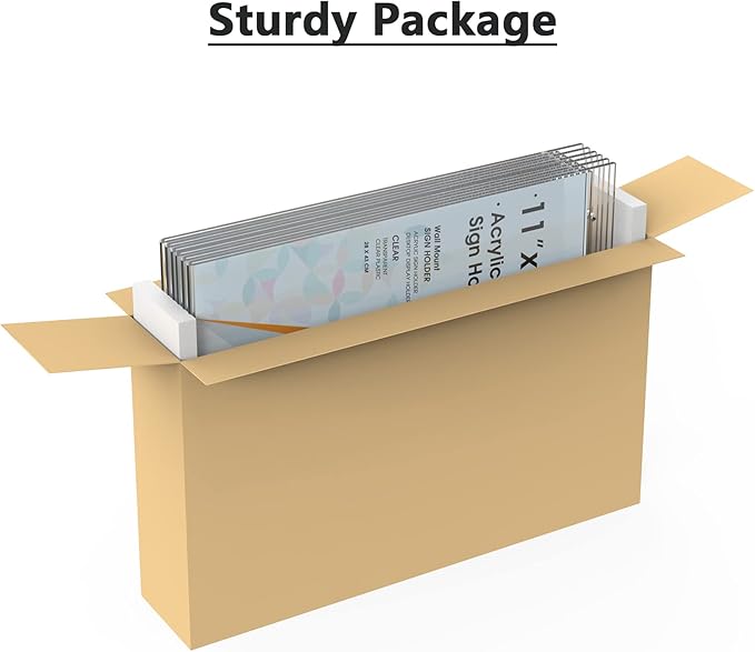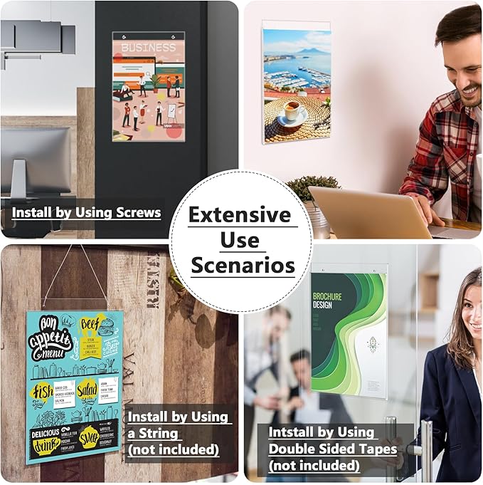 - Easy to Assemble: Our wall mount sign holder is pre-drilled(the pitch-row is 8 inch), and it comes with screws. You can install it by using screws and anchors, or hang it by using a string, or just stick it by using your double-sided adhesive strips on wall without drilling.