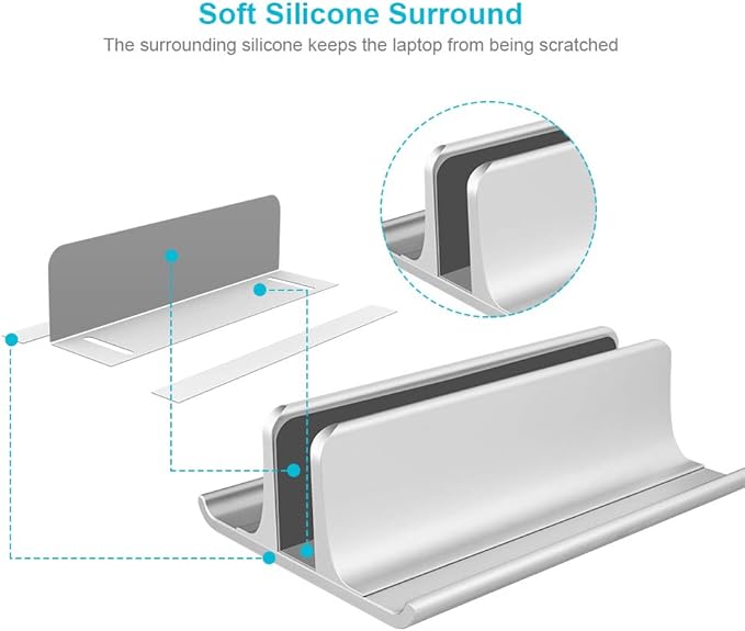Vaydeer 3-in-1 Aluminum Laptop Stand Vertical Laptop Stand Holder for Desk with Adjustable Dock, Space-Saving Organizer for All MacBook, Surface, Samsung, HP, Dell, up to 17.3 inch