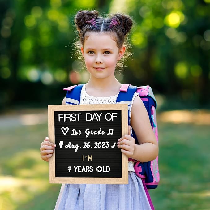 Changeable Felt Letter Board with Letters, Pre Cut & Sorted 725 Letters, First Day of School Board, 10x10 Inch Message Board, Classroom Decor Farmhouse Wall Decor Sign Board