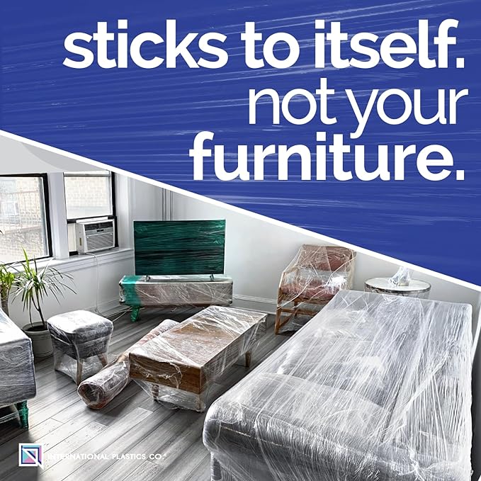 - EFFORTLESS PACKING & STORAGE: Ditch the messy tapes and frustrating twine! This stretch film conveniently wraps furniture, boxes, and more, leaving no residue behind. Perfect for space-saving storage too!
