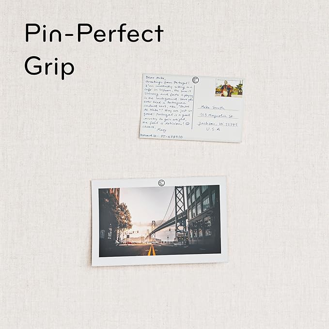 - UPGRADE YOUR WORKSPACE: This classic board features a white wood style frame and an elevated linen surface that add a touch of style and functionality to any space; includes two push pins; the top choice for cubicle accessories and home office decor