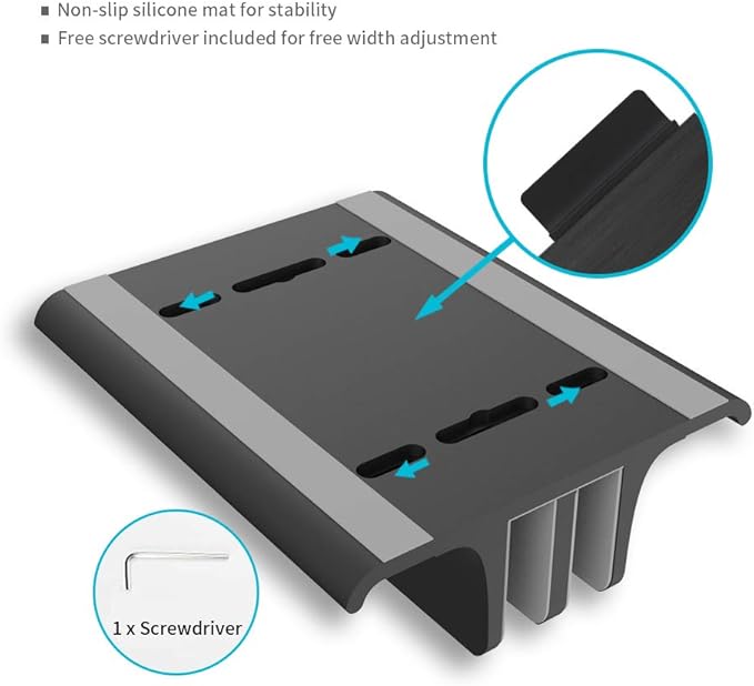 - Adjustable Size for a Perfect Fit - This stand is designed to accommodate laptops with a thickness ranging from 0.55 inches to 1.69 inches. Simply tighten the screw to adjust the size, ensuring a perfect and secure fit for your device