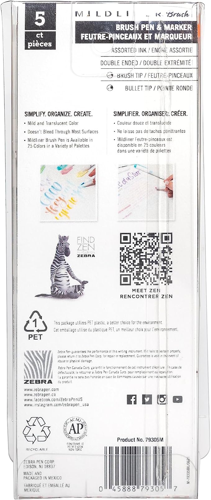 Zebra Pen Mildliner Brush Marker, Double Ended Brush and Fine Tip Pen, Assorted Warm Colors, 5 Pack