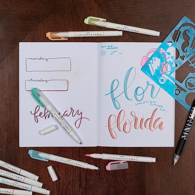 Zebra Pen Mildliner Brush Marker, Double Ended Brush and Fine Tip Pen, Assorted Soft Colors, 15 Count (Pack of 1)
