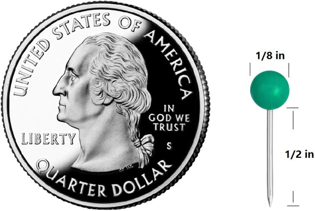Map Tacks 1/8-Inch Assorted Color Beads Head Map Marking Push Pins,500-count (Green)