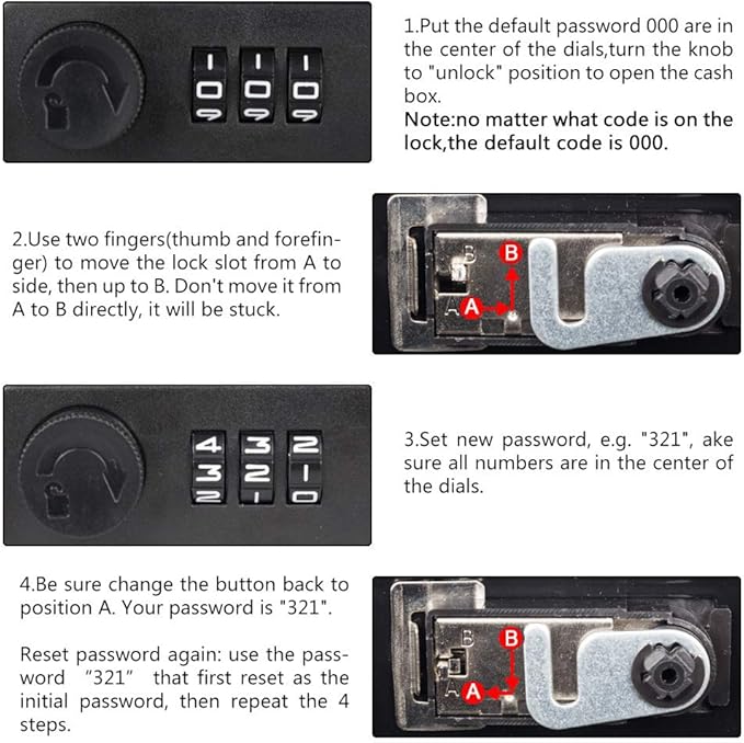 - WIDE APPLICATION:Lock boxes with combination lock is suitable for indoor and outdoor small business,commercial supermarket,store,cafe use.Suitable to store bills, coins, checks and receipts.