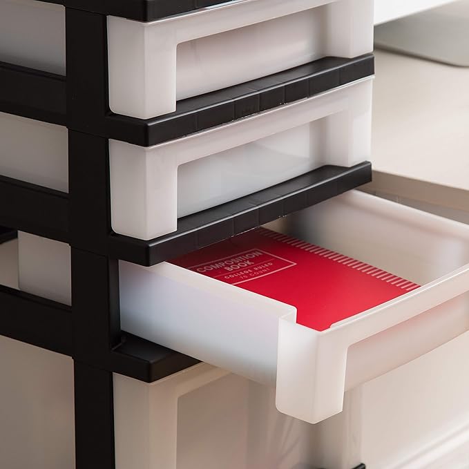 IRIS USA Plastic Drawer Storage Organizer Rolling Cart, with Wheels Casters, 7-Drawers, for Classroom Art Craft Supplies Dresser Closet Bathroom Bedroom, Top Organizer for Small Parts, Black/Pearl