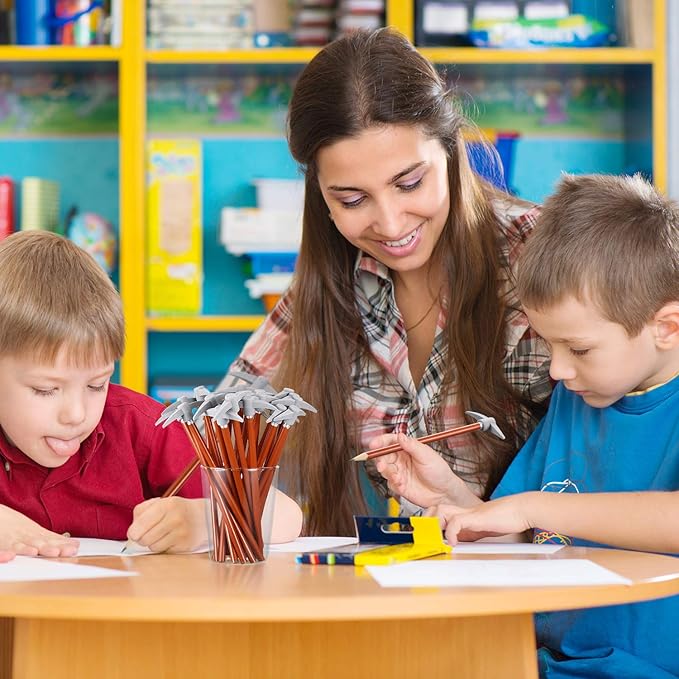 - Pencil eraser set: every pencil features an axe-shaped eraser topper; Erasers is gray, pencils is brown