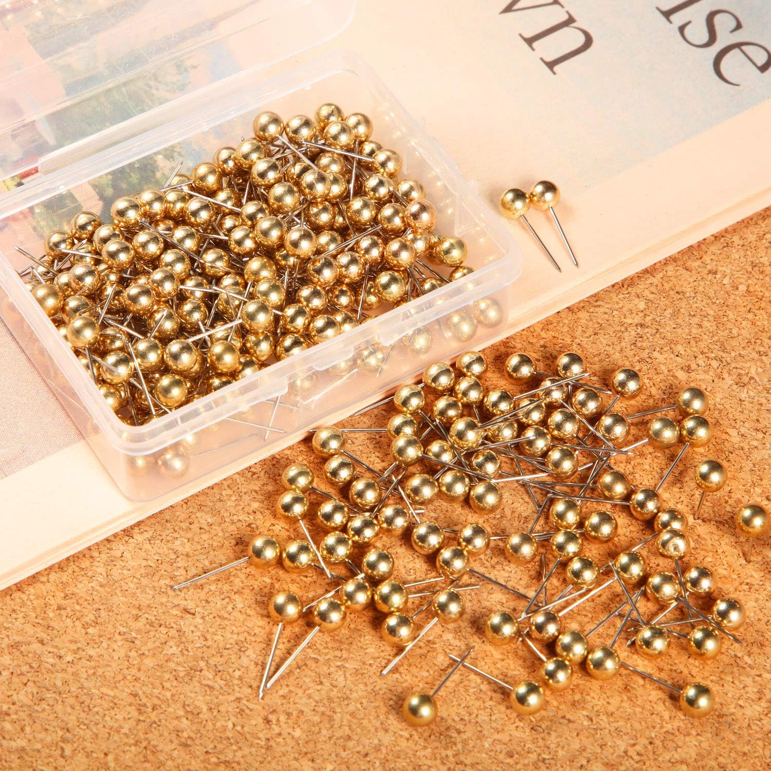 Map Tacks Push Pins Small Size 300 Packs (Gold, 1/5 Inch)