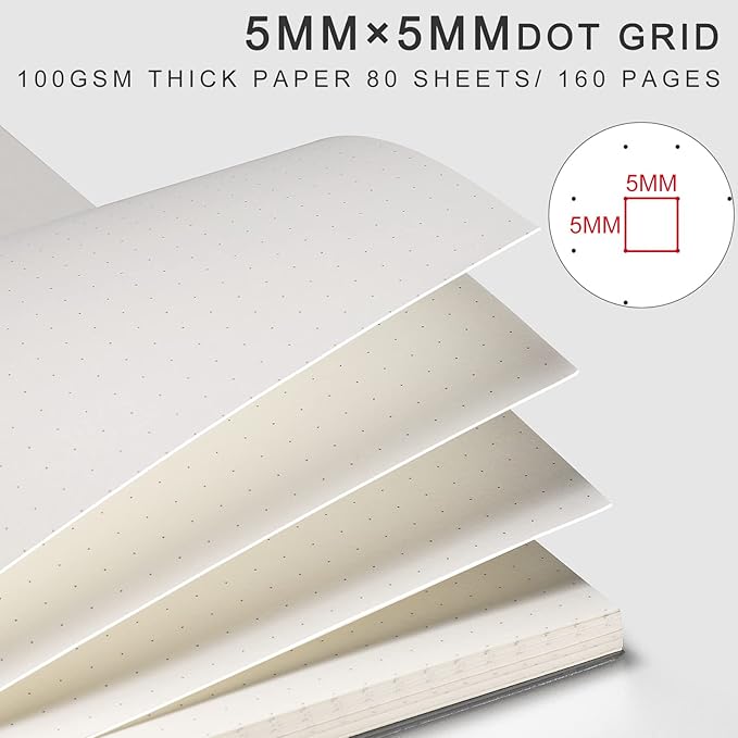 - 3 Pack A5 Size - Package comes with 3 Pcs dot grid notebook of A5 size (5.7" x 8.3"). 80 sheets/ 160 pages per pack. Total 480 Pages!