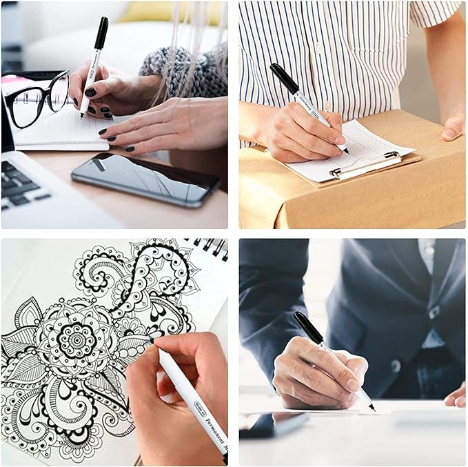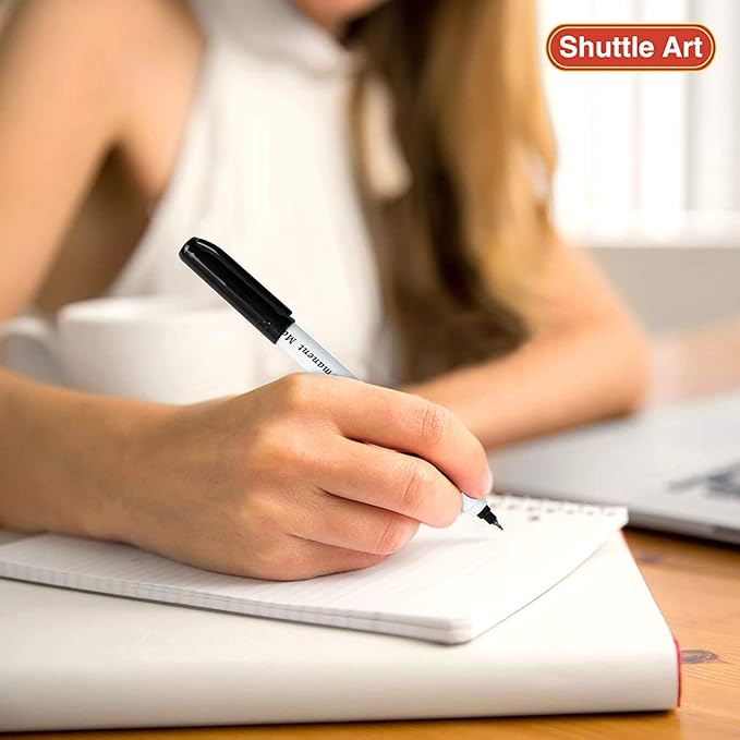 - Shuttle Art Pack of 30 premium black ultra fine point permanent markers, mark on paper, glass,ceramic,plastic, wood, rock, metal and almost all surfaces.