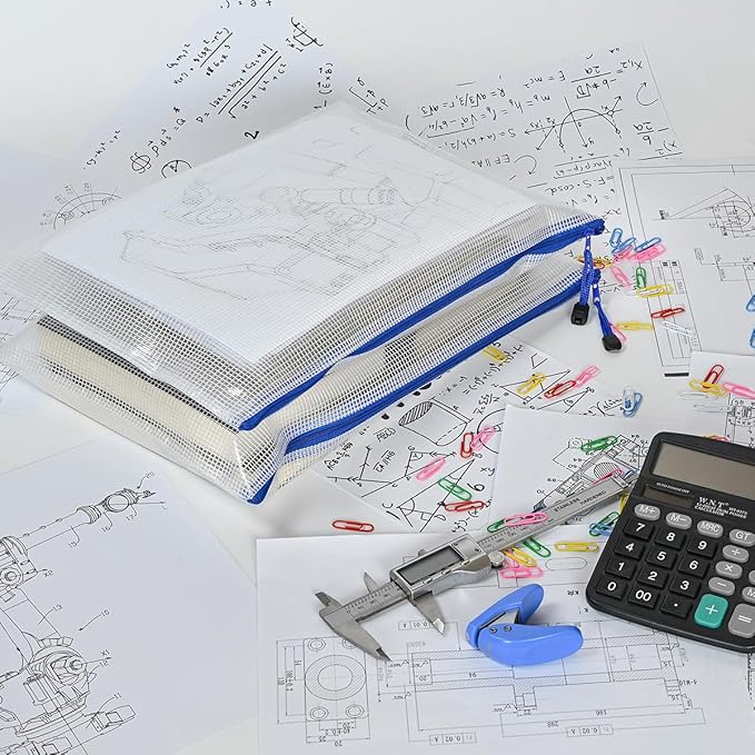 AUSTARK 10 Pcs Zipper File Bags, Waterproof Plastic Mesh Pouch for Office School, Board Game Storage Bags (B4 Size 15''x11'', White and Blue)