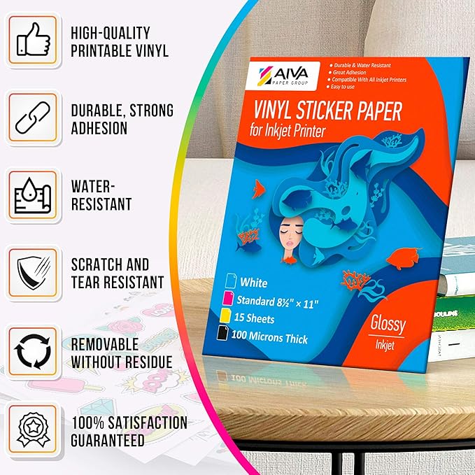 - Scratch and Tear Resistant Paper - our printable vinyl sheets for inkjet printer made with high-quality glossy printable sticker paper, your artwork will be extremely durable, bright colored and reliable