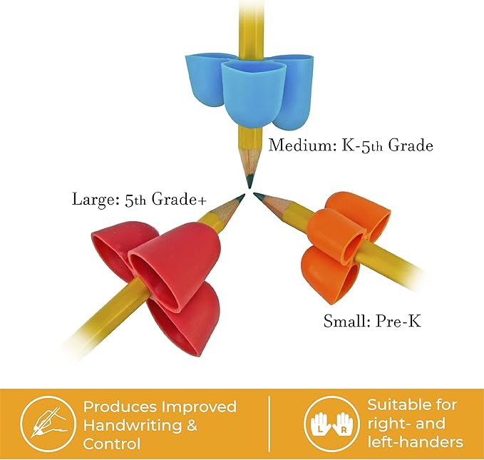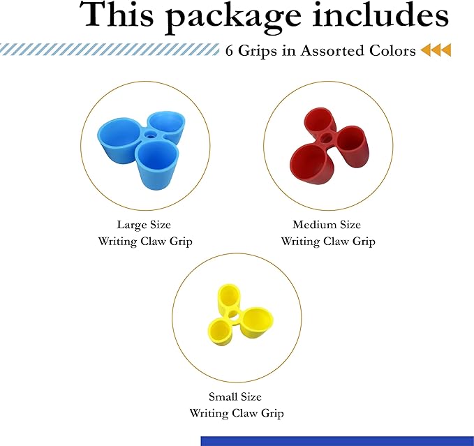 - Pencil Grip: The Writing CLAW Sampler pack contains two each of three grips, small, medium & large. The small grips are for pre-K children, the medium grips are for kindergarten-5th grade & most adult females and large grips fit 5th grade + children.