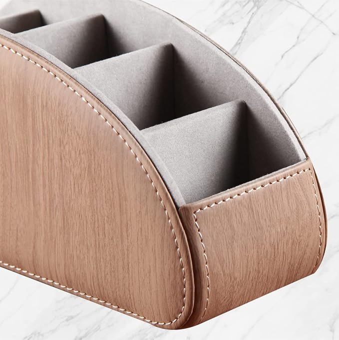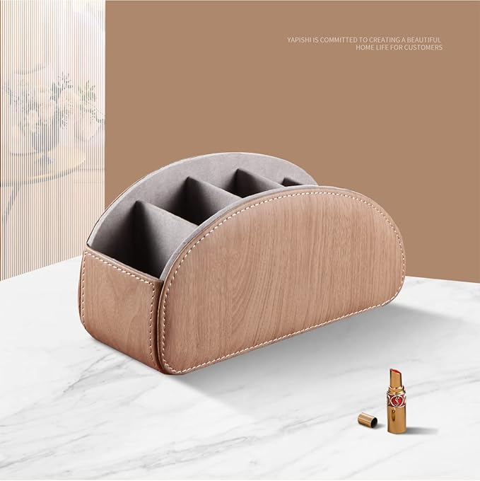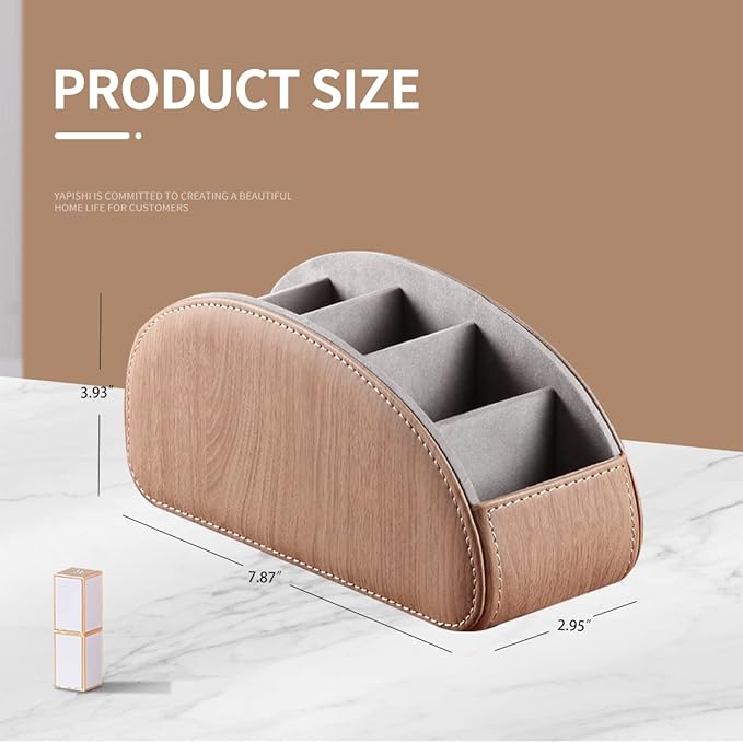 YAPISHI All-in-One Leather TV Remote Control Holder With 5 Compartments Nightstand Desktop DVD Media Player Remote Caddy Storage Box Organizer Tray For Makeup Brush Pen Stationary Table Controllers