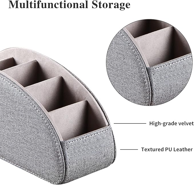 - MULTI-FUNCTIONAL: 5 compartments desk organizer to hold universal remote controllers for air conditioner, cable box, Roku, Apple TV, Amazon Fire TV, soundbars, mobile phone, small electronic media accessories, cosmetic, brush pen and glasses, pens/pencil and other office stationery