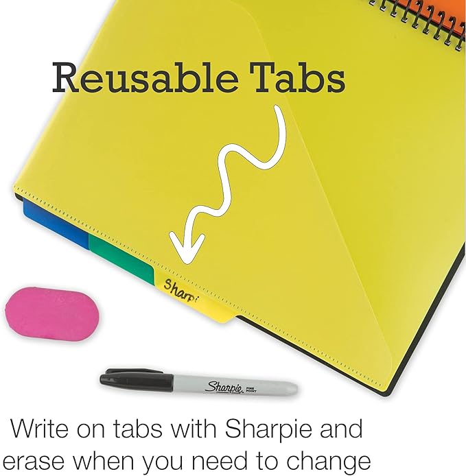 - Write-on and Erase Color Tabs - Locate and categorize more efficiently by writing on your reusable colored tabs with a marker and erasing when done, making it easy to clean for multiple uses