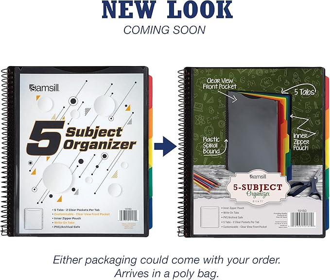 Samsill 10 Pocket Poly Organizer with 5 Dividers,File Folders Letter Size,Customizable Front Cover,Inner Zipper Pouch,Erasable Write-On Tabs in Assorted Colors,Plastic Folder with Pockets
