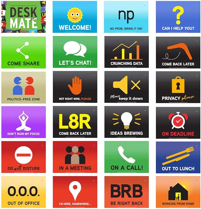 Trainers Warehouse Deskmate Plus - Office Desk Accessories | 24 Signs to Discourage (or Invite) Distractions | Signs for Office - Sturdy Calendar-Style Stands 5"H x 7"W