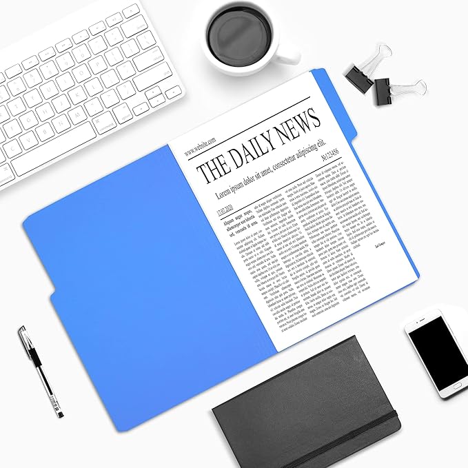 Amazon Basics File Folders, Letter Size, Heavyweight 1/3-Cut Tab Assorted Colors, 50-Pack