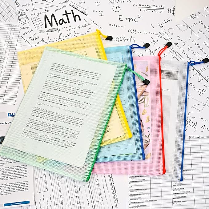 AUSTARK 10 Pcs Zipper File Bags, Waterproof Plastic Mesh Pouch for Office School, Board Game Storage Bags (A4 Size 13.4''x9.4'', Multicolored)