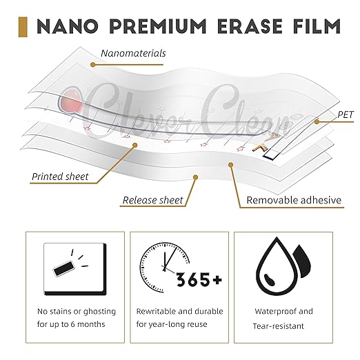 - NEW TECHNOLOGY, NEW EXPERIENCE - Customer's experience is very important to us, so we use the nano premium erase film on our products. Compared to the old PET film, the nano material will make your writings super easy to be wiped off even after you leave the writings on the goal sticker for a very long time. And it won’t leave any stains or ghosting. The nano film is also waterproof, so if you want to clean the sticker with a wet cloth. Just do it.
