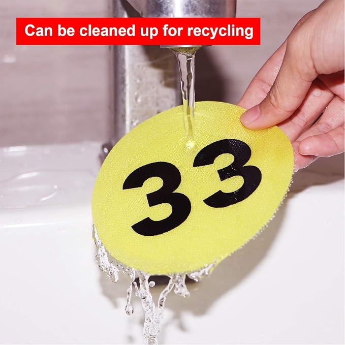 - Sizes and Bright Colors - 4" in diameter and 6 colors: red, yellow, orange, green, blue and purple, durable nylon material with numbers 1-36.