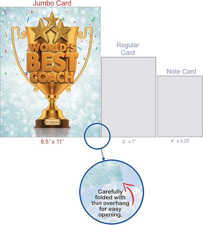NobleWorks - 1 Jumbo School Teacher Thank You Notecard From US, Everyone with Envelope (8.5 x 11 Inch) - Team Sports Gratitude, Mentor, and Instructor Notecard - World's Best Coach J3117TYG-US