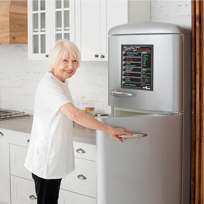 CHALKY CROWN Magnetic Dry Erase Menu Board for Fridge Includes 4 Liquid Chalk Markers - Weekly Meal Planner Blackboard, Grocery List & Notepad for Kitchen Refrigerator - Chalkboard Magnet