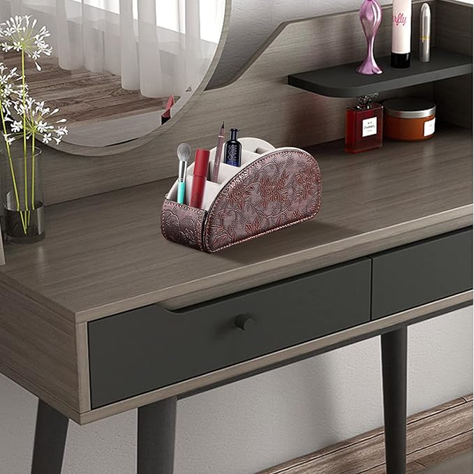 - MULTI-FUNCTIONAL LIVING ROOM DECOR: 5 compartments desk organizer to hold universal remote controllers for air conditioner, cable box, Roku, Apple TV, Amazon Fire TV, soundbars, mobile phone, small electronic media accessories, cosmetic, brush pen and glasses, pens/pencil and other office stationery