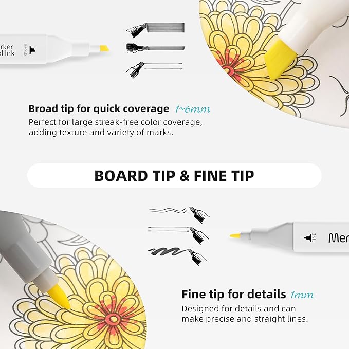 - UNLEASH YOUR CREATIVITY - The MemOffice alcohol based markers come with dual tips, allowing you to create versatile styles, sketches, and patterns with ease. Broad and fine twin tips are designed for precise highlighting, underlining, or quick coloring in large areas