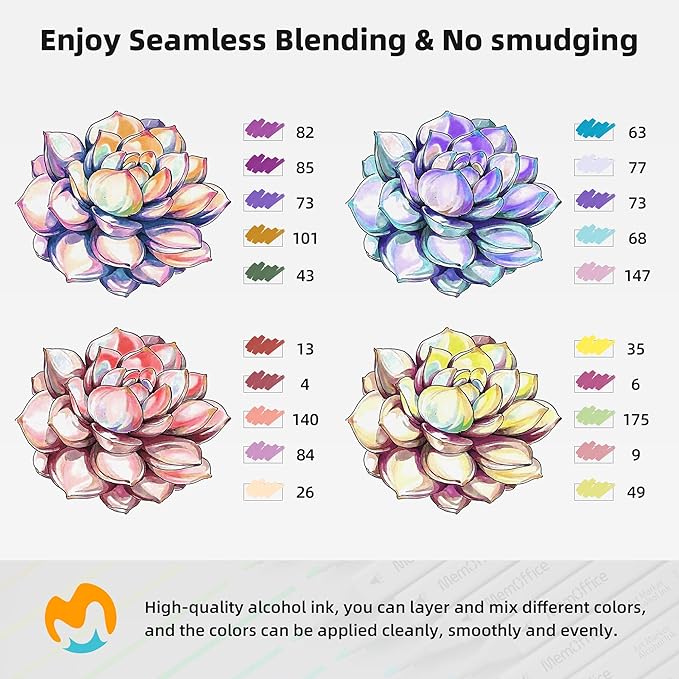 - PREMIUM QUALITY - Made from sustainable materials, these alcohol-based markers dry quickly. Layer and mix different colors without worrying about smudging or blotches. Expand your artistic horizons with our high-quality alcohol markers