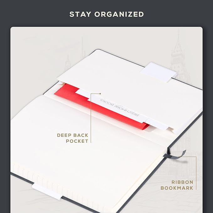- Enjoy Lasting Reliability - This college journal for men features a vegan leather hardcover and 180° lay-flat binding. The deep back pocket adds convenience for storing notes, cards, or small essentials.