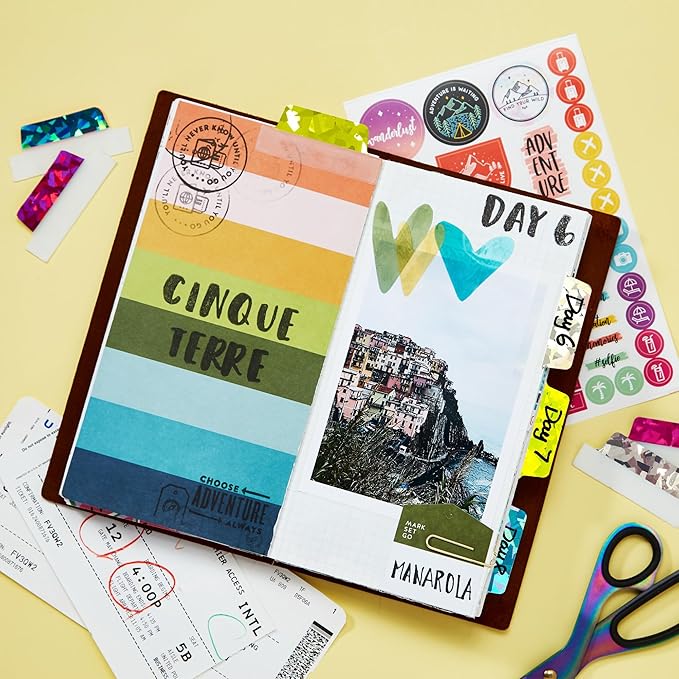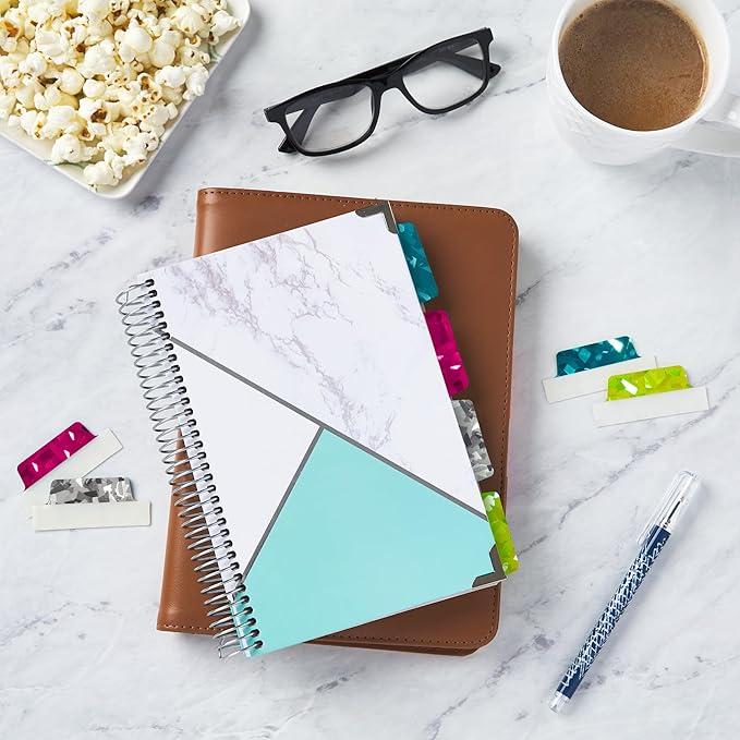 - Premium holographic metallic note tabs in turquoise, magenta, yellow and silver add shimmer and sparkle to planners and bullet journals