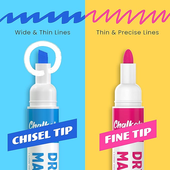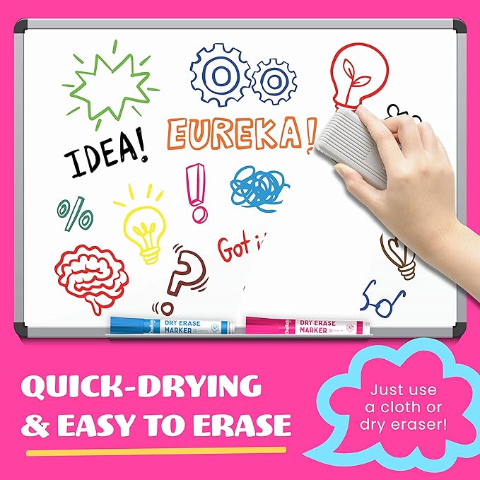 - Erasable Markers for Whiteboard - Dry Erase Marker set that dry quickly, erase quickly with any cloth or dry eraser. Dry erase markers chisel tip allows to produce thin or thick lines without any breaks, making them perfect for classrooms or conference rooms.